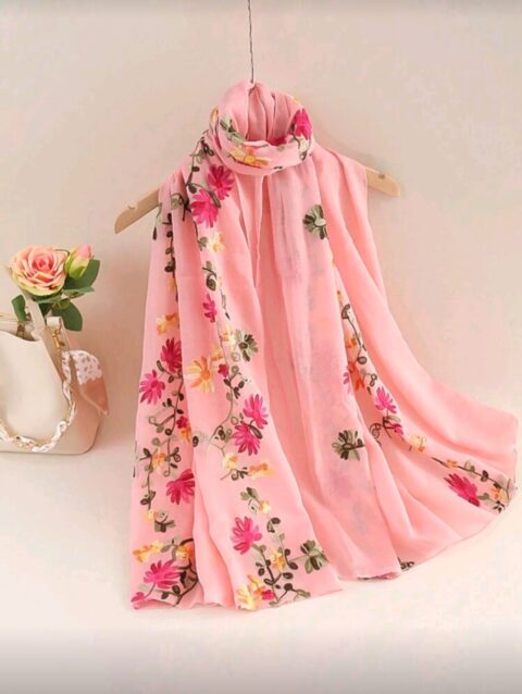 طرحه شال تراثي باللون الوردي و نقشة فاخرة