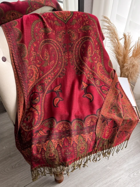 طرحه شال تراثي فاخر بنقوش شرقية – أحمر داكن