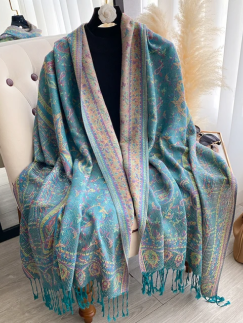طرحة شال تراثي أنيق باللون التركواز