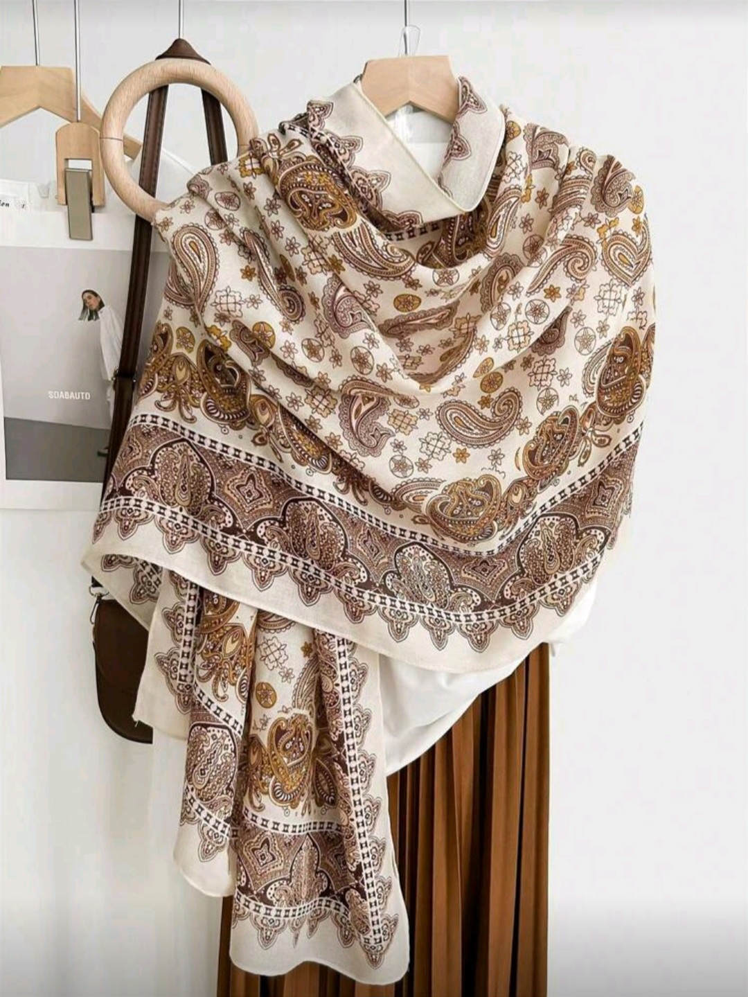 طرحة من Shein بلون بيجي راقٍ مزينة بنقشة تراثية فخمة، مثالية لإطلالة كلاسيك أنيقة.