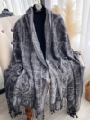 الخامة ناعمة وخفيفة، تنسدل بشكل أنيق على الكتف وتمنحك إحساسًا بالراحة والدفء الخفيف.