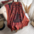 شال تراثي فاخر بتدرجات اللون البني الغامق مع الأحمر المحروق، مزخرف بنقوش شرقية دقيقة تعكس الذوق الكلاسيكي الأصيل.