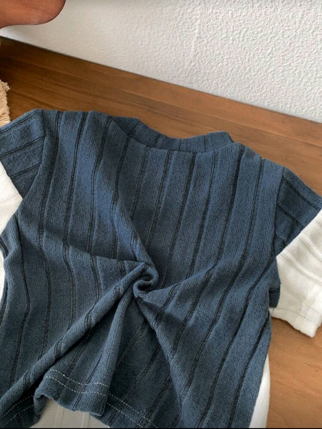 القماش ناعم وخفيف على بشرة الأطفال، مما يجعله مناسباً للارتداء طوال اليوم سواء في المنزل أو أثناء الخروج أو اللعب. تصميم الطقم يمنح الطفل حرية الحركة مع مظهر أنيق وبسيط يناسب مختلف الإطلالات.