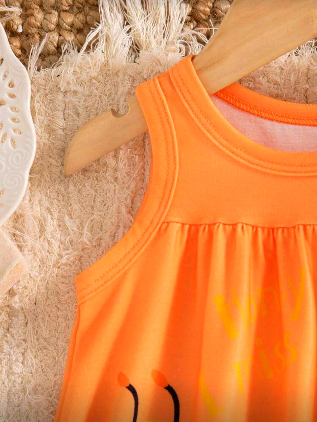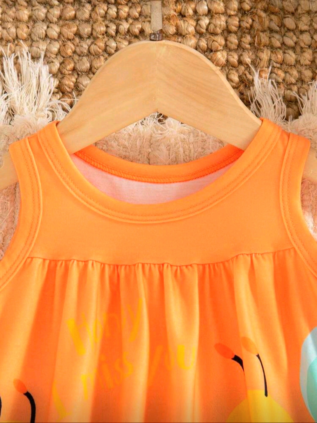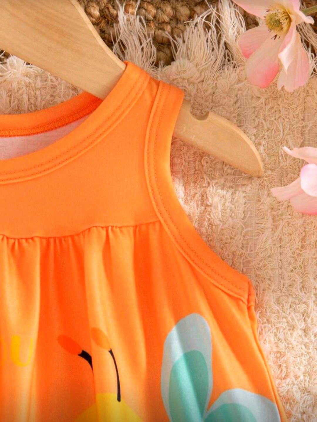 فستان أطفال بناتي لطيف باللون البرتقالي مع طبعة نحل وزهور مرحة، تصميم مريح بدون أكمام مناسب للأعمار من 6 شهور إلى 3 سنوات.
