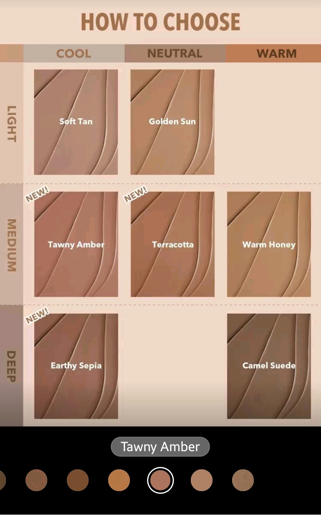 درجة Tawny Amber مناسبة للبشرات المتوسطة إلى الداكنة، وتمنح دفء طبيعي يحدد الوجه ويبرز جمال الملامح دون مبالغة.